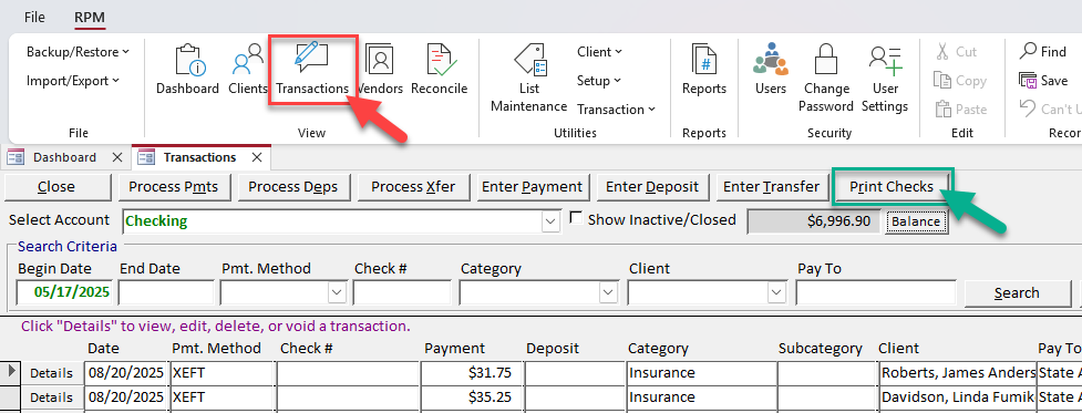 Writing checks by hand is a thing of the past once you have RPM! Our software allows you to quickly and easily print checks for all your clients’ check payments. Follow along below to learn more about the process of creating and printing checks.